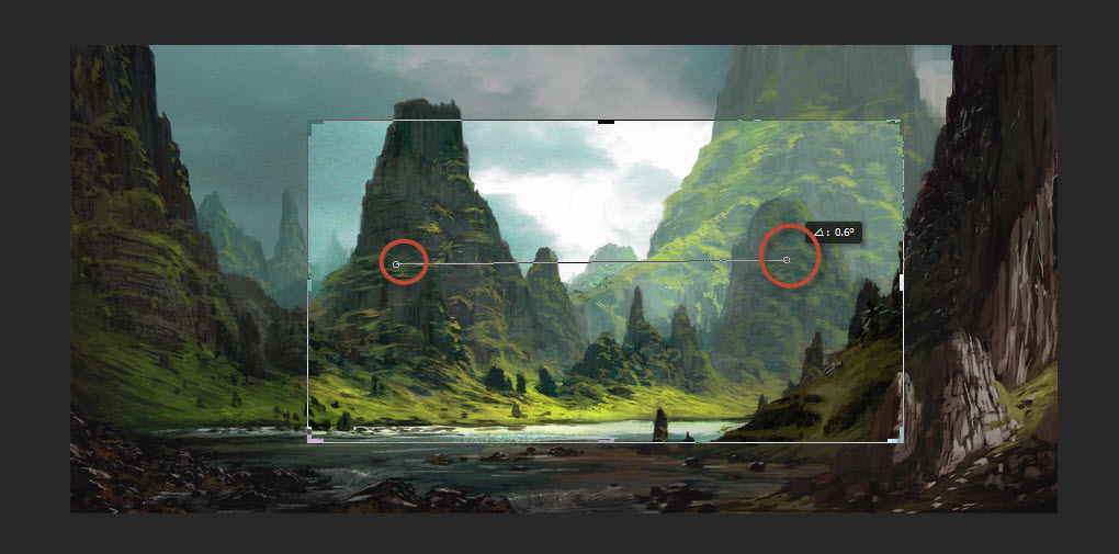 The starting point and the end point would be something that appears straight in the image. Photoshop automatically straightens the image upon releasing the mouse button.