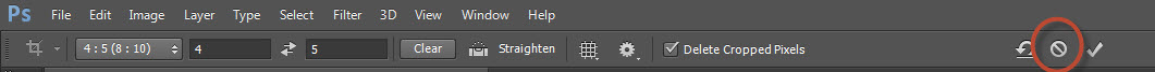 Changed your mind have you? Go to Options bar –> Click Cancel or simply press the Esc key.
