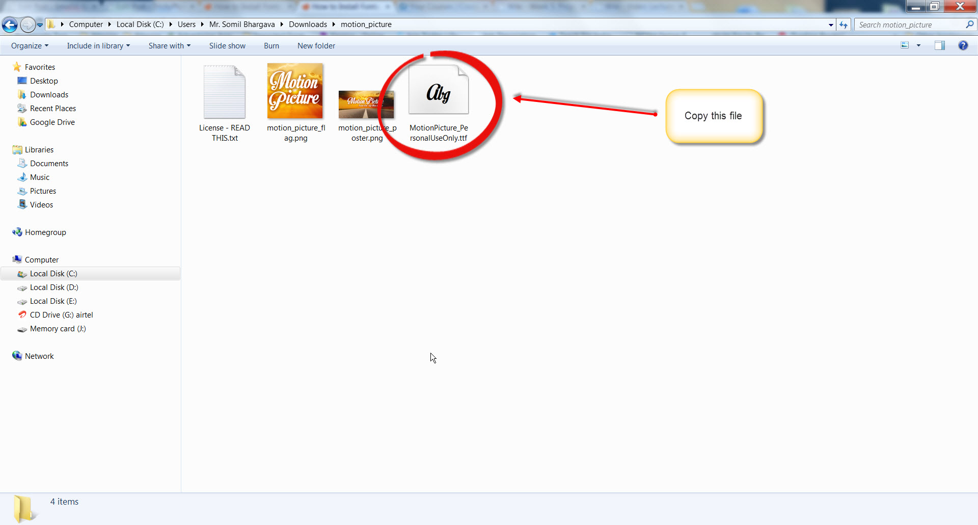 install fonts in photoshop Step 5